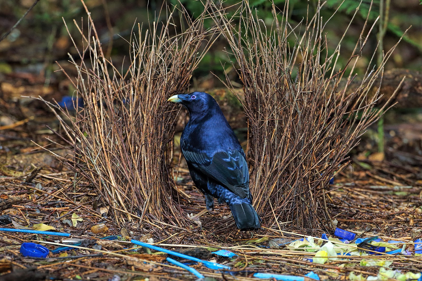 moss-covered banks along the adjacent road, a Sultan tit flies through and